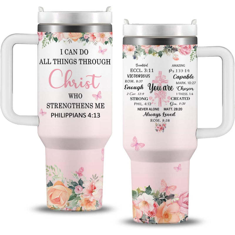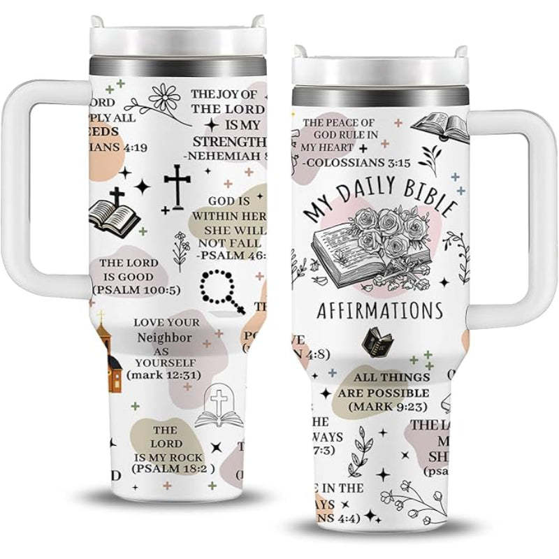 Stay hydrated throughout the day with the 40 oz Tumbler. This expertly designed tumbler offers both convenience and inspiration for your daily beverages, making it ideal for those with busy lifestyles. Its functionality is complemented by a reminder of faith, making it the perfect choice for on-the-go individuals.
