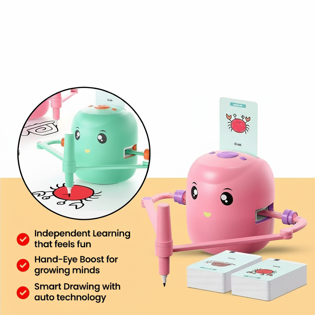 This Automated Drawing Robot Toy For Kids is suitable for children exploring early drawing skills, pattern recognition, and guided creativity. It works well in home learning setups, playrooms, or classroom activity stations where independent creative tools are preferred.
