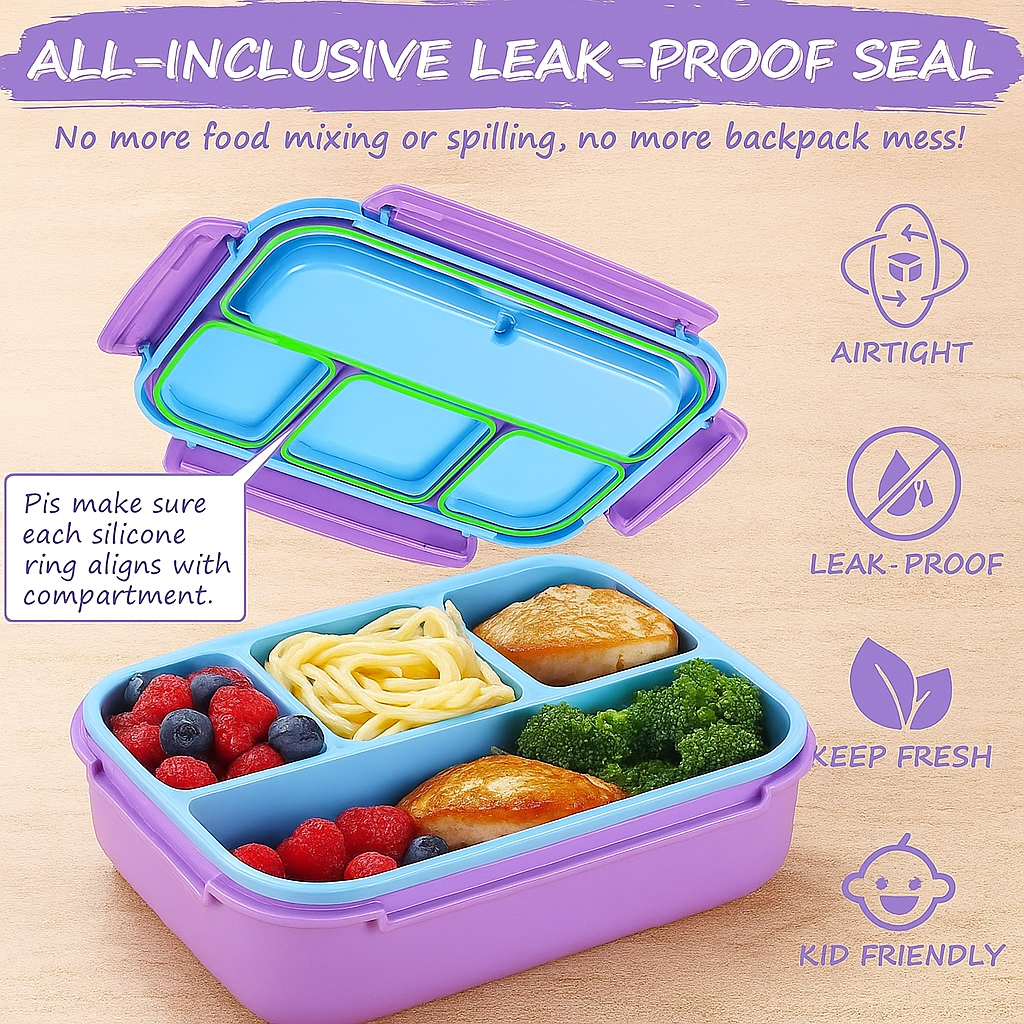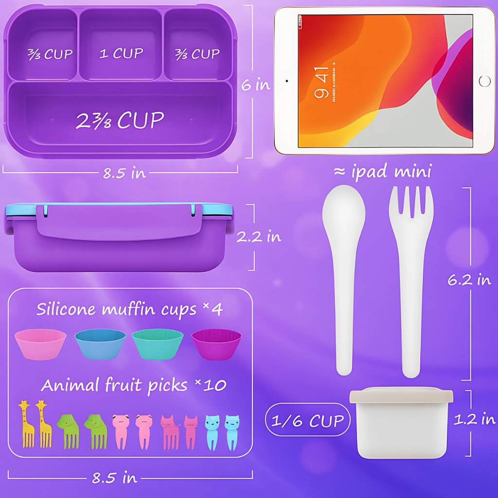 - 1 x Purple Kids Bento Lunch Box (4 compartments, 1200ml)
