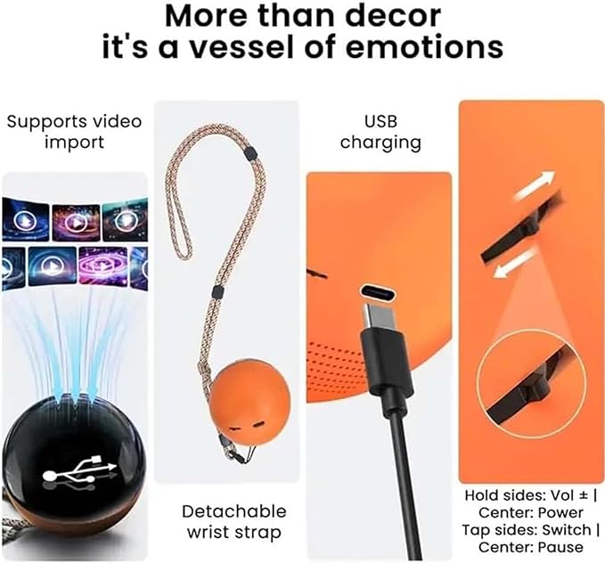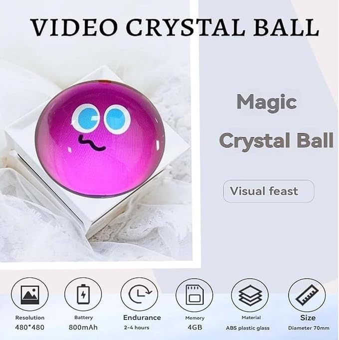 The Interactive Video Toy includes a no-sound animated light loop, ensuring that the visuals remain the primary feature. Unlike screens, this orb projects interior visuals directly onto the surface of the orb.