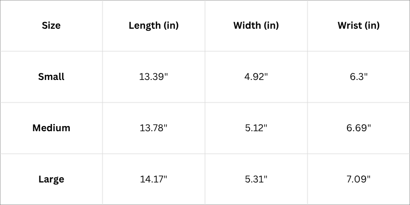 Size Chart (Inches)