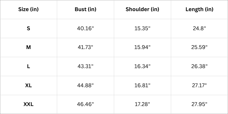 Size Chart (Inches)