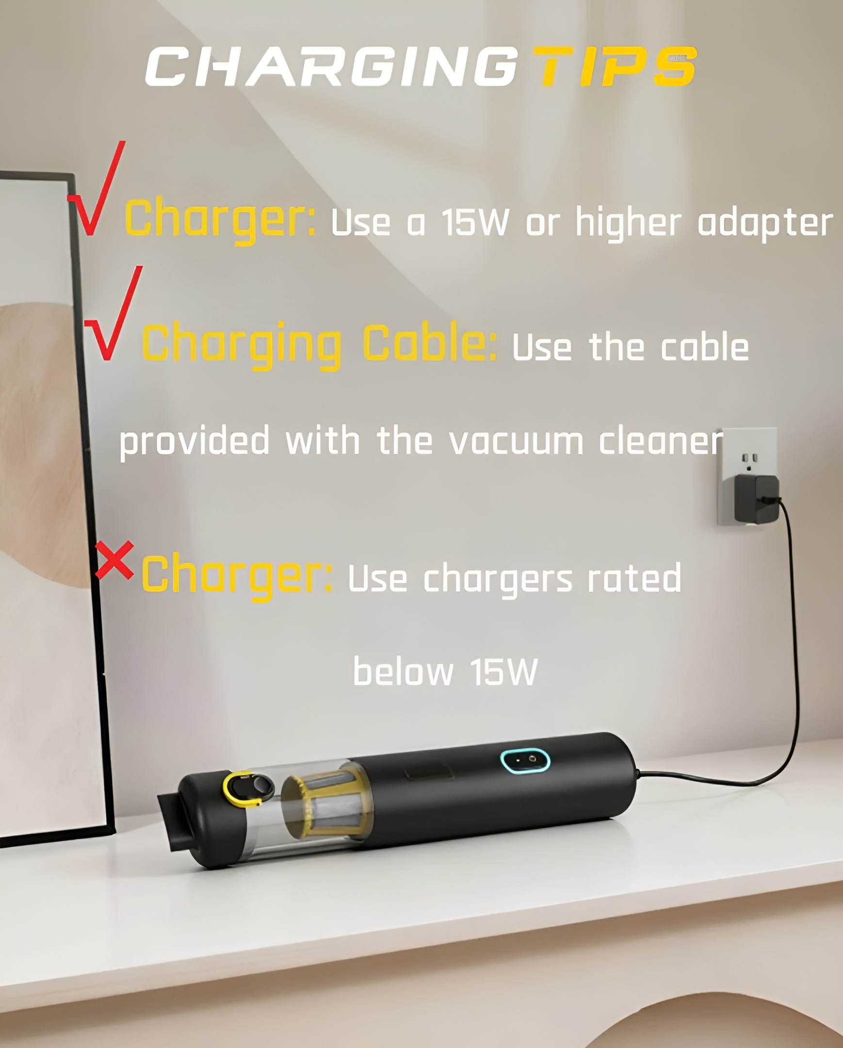 This vacuum features a compact build that supports easy storage in small compartments such as glove storage areas or travel kits. Its lightweight form allows convenient handling during routine cleaning sessions. The cordless setup removes the need for constant cable management, making it suitable for quick cleanups at any time.